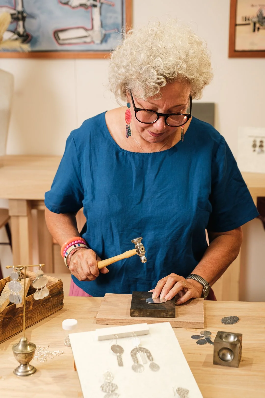 Sue Garrard is a South Australian based artist working in the areas of jewellery, print-making and installation. Making has always been an essential part of her identity and she crafts jewellery from reclaimed and recycled materials, inviting a reflection on sustainability and ethical design.